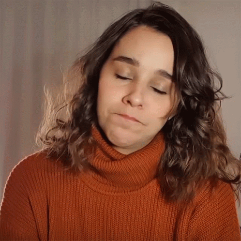 Thati Lopes with her eyes closed, making a frustrated and disappointed face, shaking her head.
