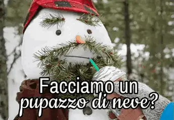 Olaf from Disney's Frozen, also known as Oloafsorpresa Pupazzo, stands in a snowy landscape with his mouth open.