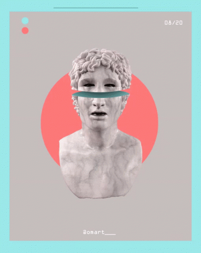 Omart's animated Greek art poster featuring a classical statue bust with a modern, sliced aesthetic.