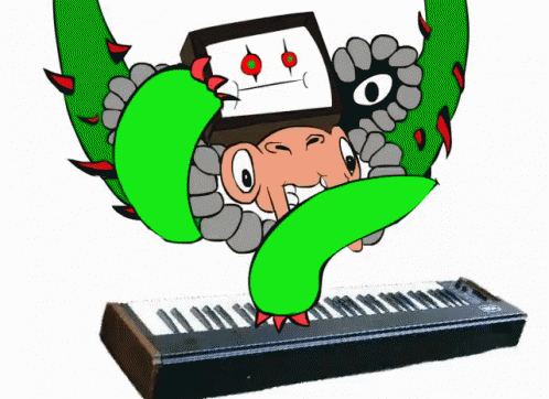 Omega Flowey, the cartoon character with green thorny arms, plays a piano keyboard with a mischievous expression.
