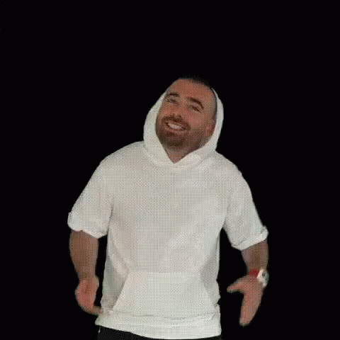 Omer Adam energetically dances in a white hoodie, with 'Swipe Up' text appearing above him.