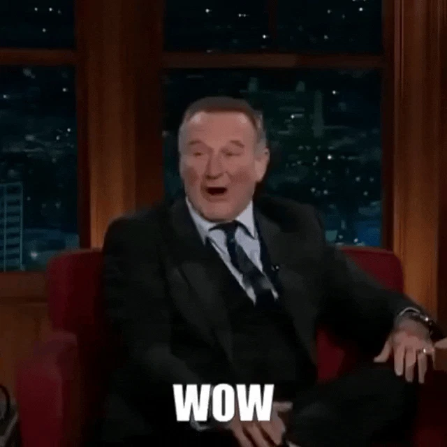 An adorable white cartoon rabbit with big blue eyes reacts with a surprised 'Wow' expression.