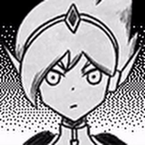 Omori Spaceboy with a shocked or surprised expression, depicted in a black and white, pixelated style.