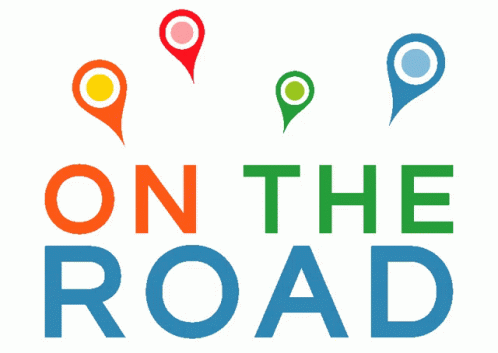 A vibrant logo featuring the words 'ON THE ROAD' in colorful block letters, accompanied by four distinct map pin icons, symbolizing travel and exploration.