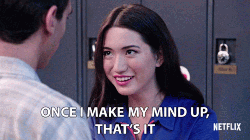 Reina Hardesty confidently states 'Once I make my mind up, that's it' in a school hallway.