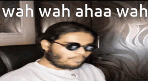 A man with sunglasses and a beard makes a distinctive 'wah wah ahaa wah' expression, a popular internet meme.