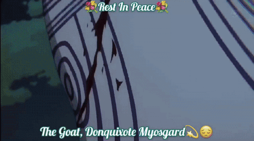 rest in peace the goat donguixote myosgard written on a screen