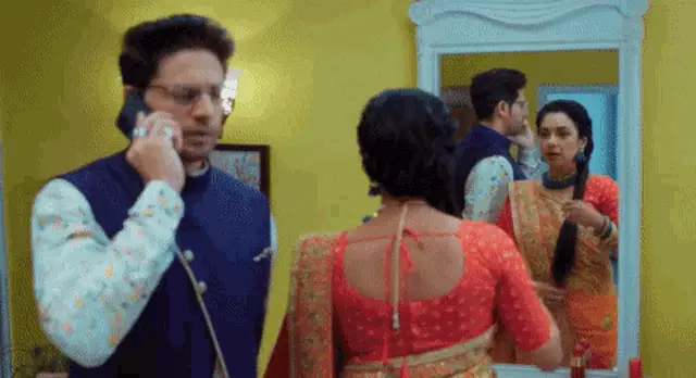 Rupali Ganguly as Anupamaa shows a surprised expression, reacting to Anuj Kapadia in this clip by Onehappyinsaan.