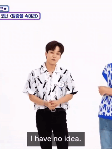 ONF U, wearing a patterned shirt, shrugs and says 'I have no idea' with a smirk.