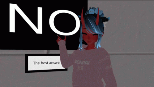 An Oni-like VRChat avatar, possibly onijayuu, points to a sign displaying 'Yes' and 'The best answer'.