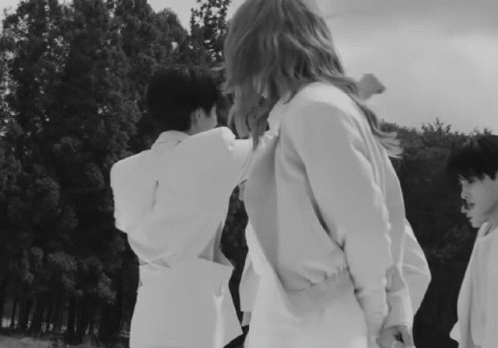 Onlyoneof's Nine and Kyubin in a black and white scene, with one adjusting the other's tie.