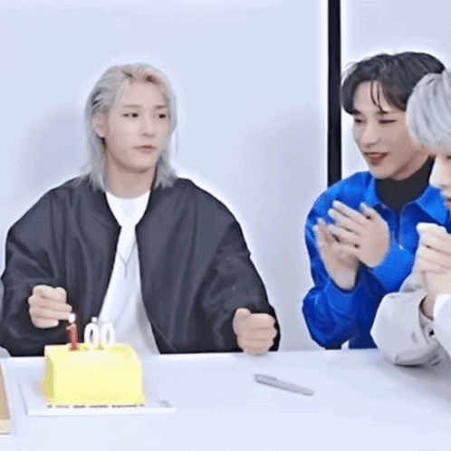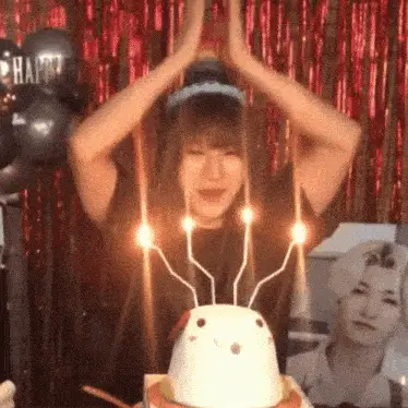 Onlyoneof members Junji and Nine making wishes and praying over a birthday cake with candles.