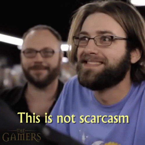 Onwaaard from The Gamers emphatically states 'This is not scarcasm' with an intense expression.