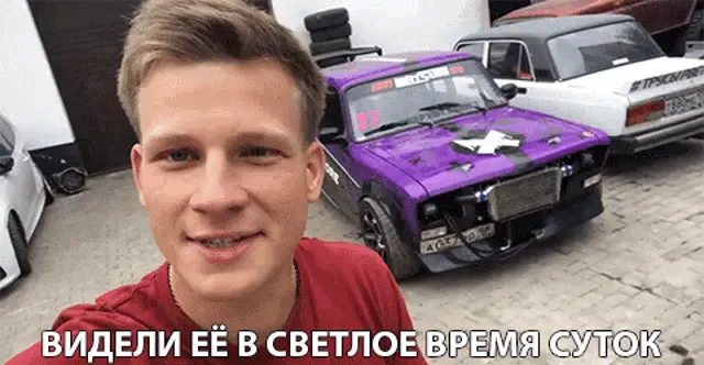 A dark Lada car performs a drift on a snowy street at night, with the Russian text 'IDIOT?' overlaid.