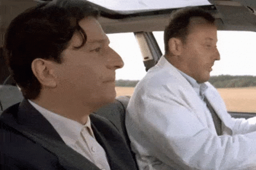 Jean Reno shouts 'Ta Gueule!' at Christian Clavier in a scene from the movie Opération Corned Beef.