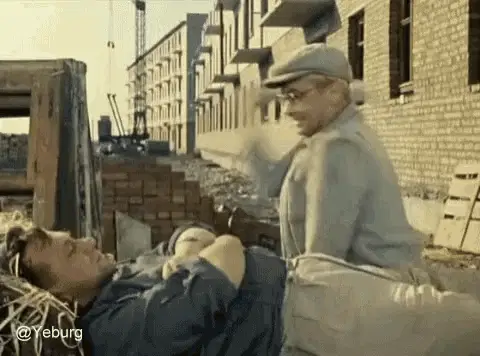 From 'Operation Y', a man in an orange hat animatedly talks to another man, expressing strong emotions.