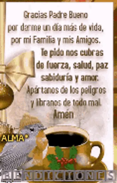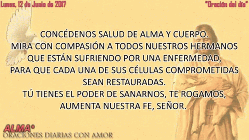 A daily prayer in Spanish for health of soul and body, asking for increased faith and giving thanks.
