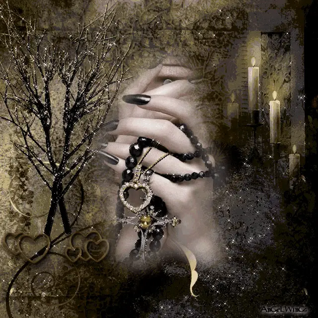 Orar Bai smiles and prays with clasped hands, looking upwards with hope in a dark setting.