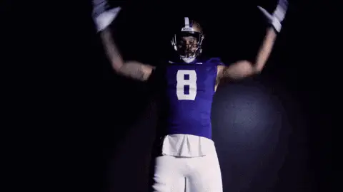 Troy Dye, an Oregon Ducks football player, gives a thumbs up during an interview on the field after a game.