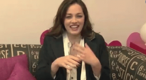 Oriana Sabatini bursts into infectious laughter while sitting comfortably on a patterned couch.