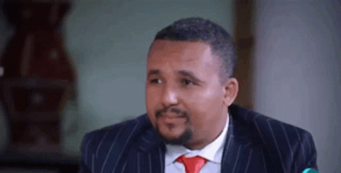 Jawar Mohammed, a man in a suit and tie, smiling and laughing.