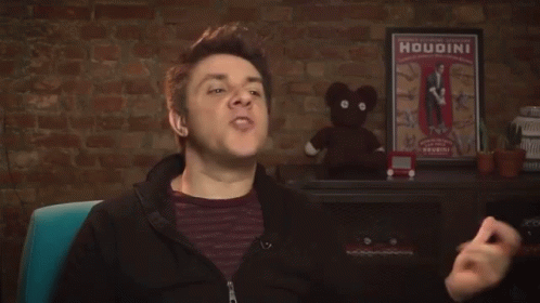 Oscar Filho gives two enthusiastic thumbs up, smiling in front of a Houdini poster.