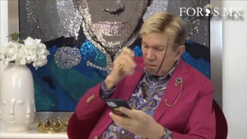 Osmel Sousa reacts with surprise and fright while looking at his phone, captured in a brightly lit room.