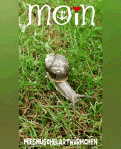 Snail crawling on grass with 'Moin' greeting and anchor symbol, representing the East Frisian coast.
