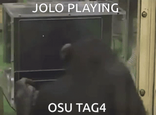 Jolo the chimpanzee skillfully plays the rhythm game Osu Tag4 on a computer screen.