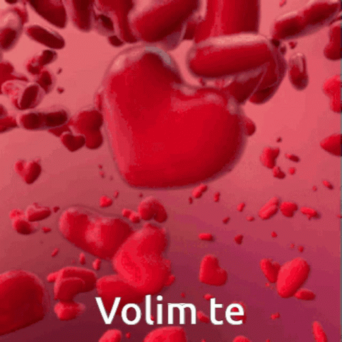 Red hearts float gracefully across the screen, displaying the message 'Volim te' (I love you).