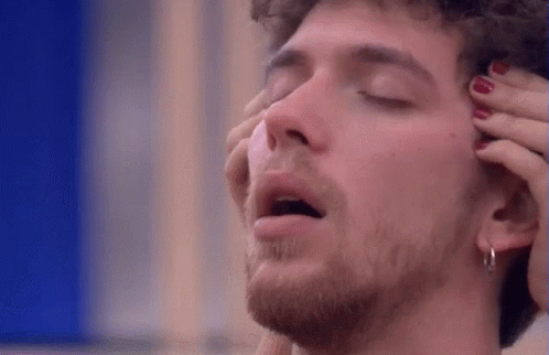 Jesus Ot enjoys a blissful head massage during Operación Triunfo 2020, eyes closed in satisfaction.