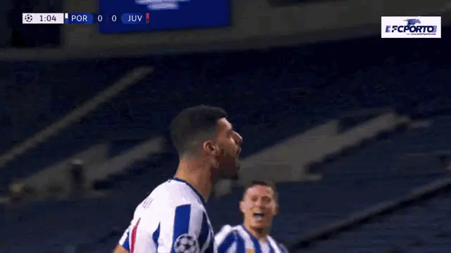 Football players Nicolás Otamendi and Francisco Conceição face off in a tense moment on the field.