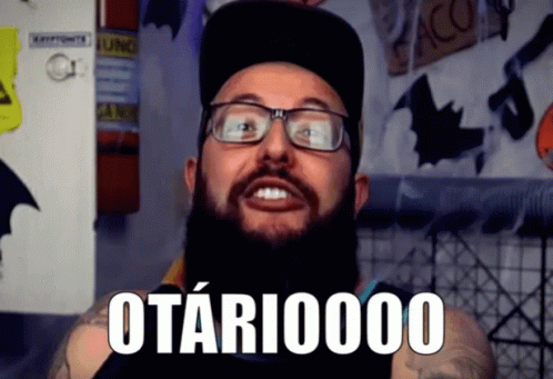 Cauê Moura screams 'Otárioooo' with an angry expression, wearing glasses and a hat.