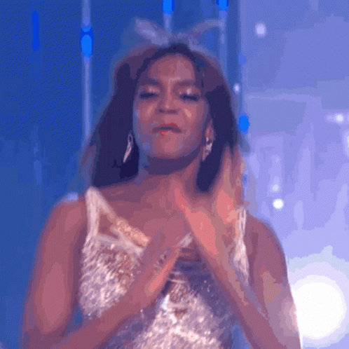 Oti Mabuse performing a dynamic dance routine on stage in a sparkling, fringed dress.