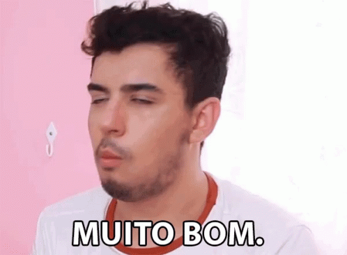 Kim Rosacuca reacts with a positive expression, with the caption 'MUITO BOM' (Very Good) displayed.
