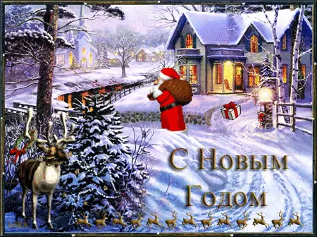 Открытка - Дед мороз верхом на олене
