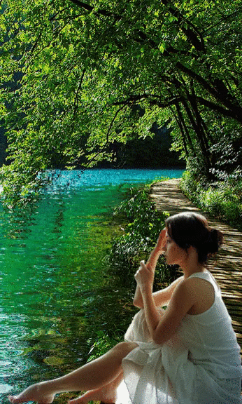 Открытка с девушкой у реки