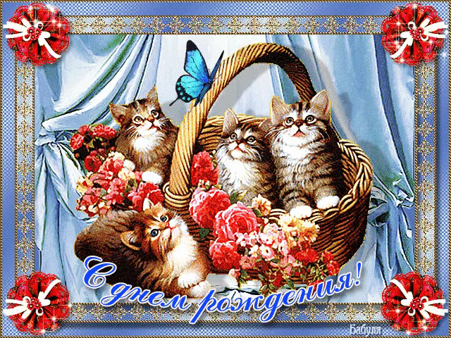 Открытка с котятами на день рождения
