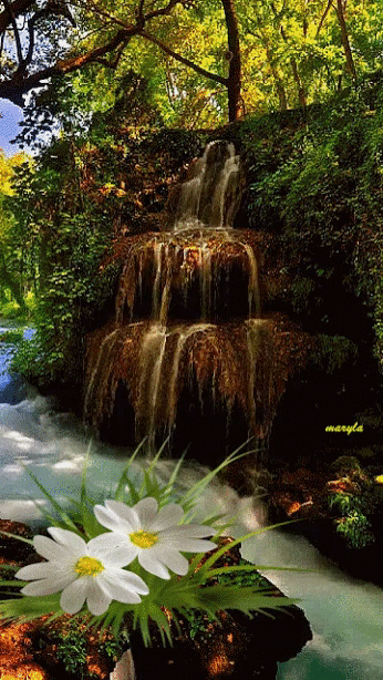 Открытка с водопадом и ромашкой