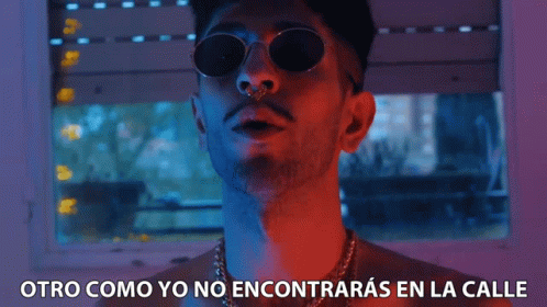 Bejo, wearing sunglasses and a nose ring, with the phrase 'Otro Como Yo No Encontrarás En La Calle' displayed.