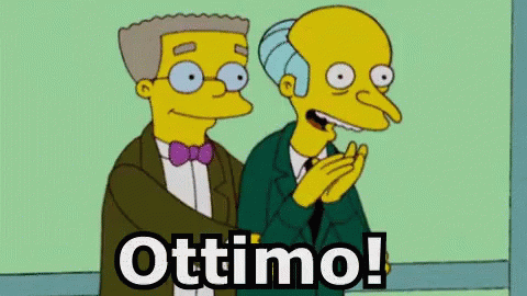 Mr. Burns and Waylon Smithers from The Simpsons enthusiastically clap and exclaim 'Ottimo!' in approval.