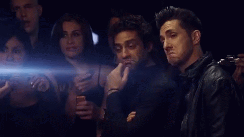 Ari Borovoy of OV7 with Gloria Trevi and Oscar Schwebel, watching a movie in a dark room.