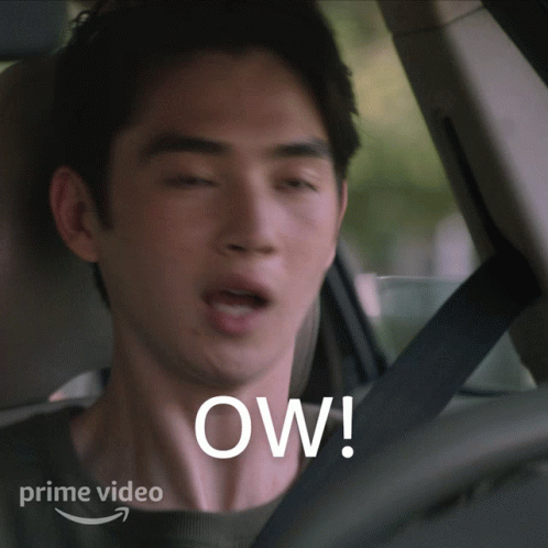 Steven (Sean Kaufman) reacts with a surprised 'Ow!' while in a car, from The Summer I Turned Pretty on Prime Video.
