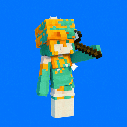 Oxy Coppergolem and another Minecraft character, holding tools, in a vibrant animation.