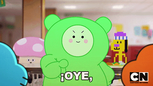 The green bear character from The Amazing World of Gumball emphatically says "Hey, I'm talking to you!"
