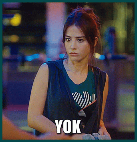 Ozge Gurel as Ezgi Inal reacts with a surprised then serious expression, with the Turkish word "YOK" (No) displayed.