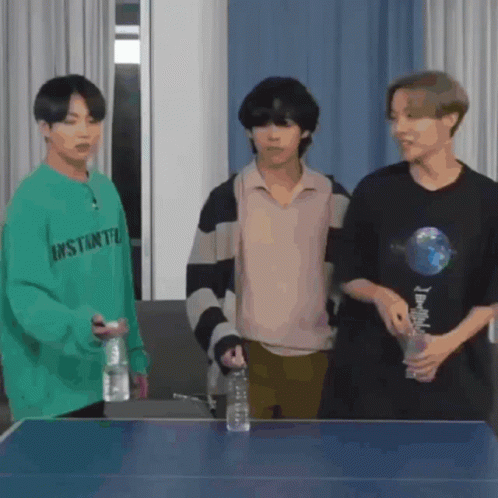 Jungkook, Taehyung, and Hobi from BTS successfully complete a bottle flip challenge during Run BTS.