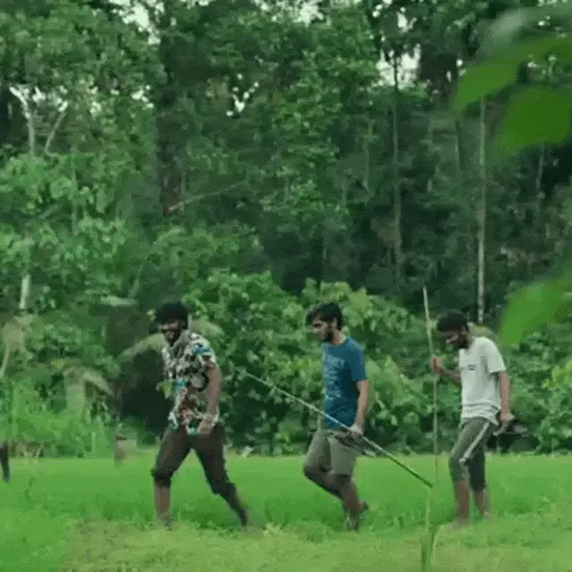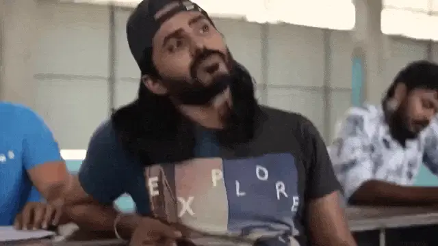 Zgod performs a paan spitting gesture, followed by another man's exaggerated reaction, part of a popular meme.