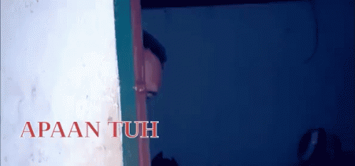 A man, possibly Bang Ucup, peeking from behind a door with a wondering expression, asking 'What is that?'