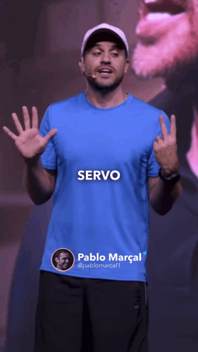 Pablo Marçal discusses money and success, gesturing passionately during a presentation.